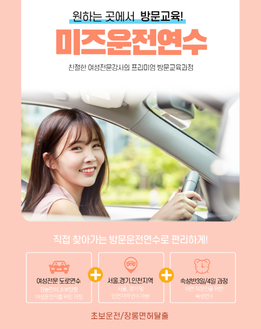 서울ㆍ경기ㆍ서초 전지역에서 편리한 방문운전연수를 받아보세요.